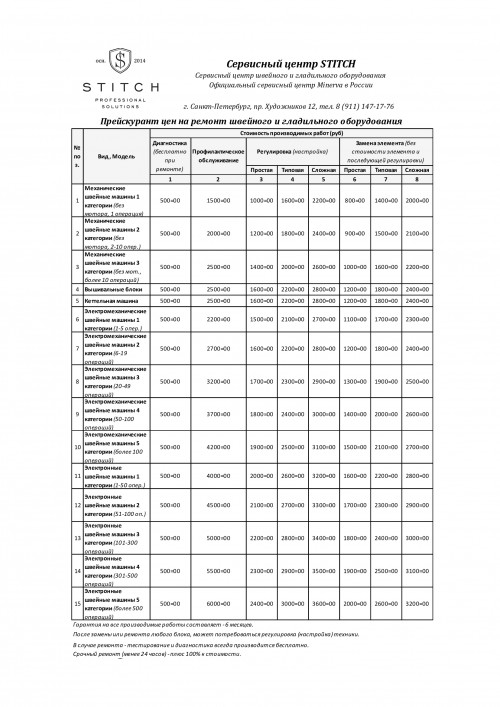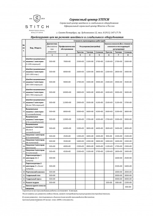 Сервисный центр по ремонту и обслуживанию швейного, вышивального и гладильного оборудования STITCH